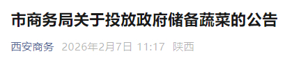 2月7日,西安市商务局发布《关于投放政府储备蔬菜的公告》,具体内容如下↓↓↓