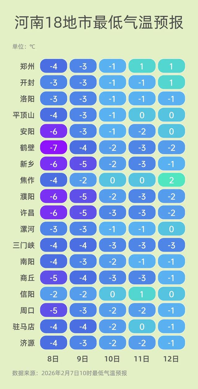 来源:河南省气象台2026年2月7日12时预报