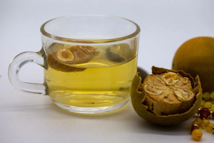 而两广地区在夏季则流行罗汉果茶,罗汉果内带有的罗汉果甜苷,是一种比蔗糖甜度还要高300倍的甜味素,但热量又相当低,因此常被作为代糖使用。泡于水中自带香甜,别有一番滋味。