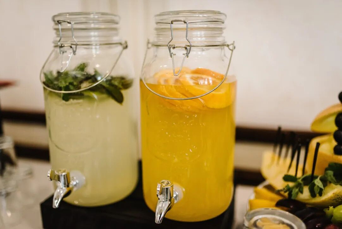 果蔬水饮还有一大好处在于它不含咖啡因,对于咖啡因敏感的人群,就餐时要是喝太多茶饮,可能会引起心悸、失眠等情况,用果蔬水饮替换茶饮,就不怕晚上睡不着了。