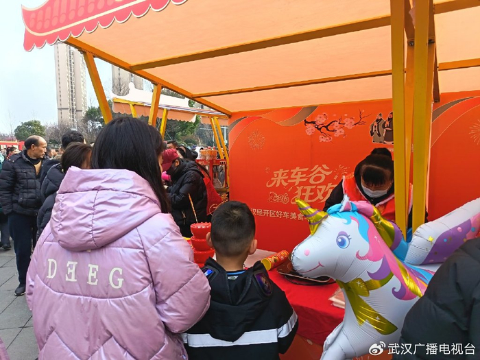 武汉经开区军山新城副主任习涛介绍,现场设置了几大类,非遗展示区设置有吹糖人、画糖画、捏面人、剪纸等摊位;年货区引入本土特色品牌,集中入驻30余家优质商户,有现炸得胜圆子、酥鱼、豆丝特色产品销售;展车区集中展示岚图、猛士、东本、奕派、吉利、小鹏等品牌汽车,提供“看车-咨询-购车”一站式服务。活动还提供理发、修鞋、写春联送祝福等便民服务。