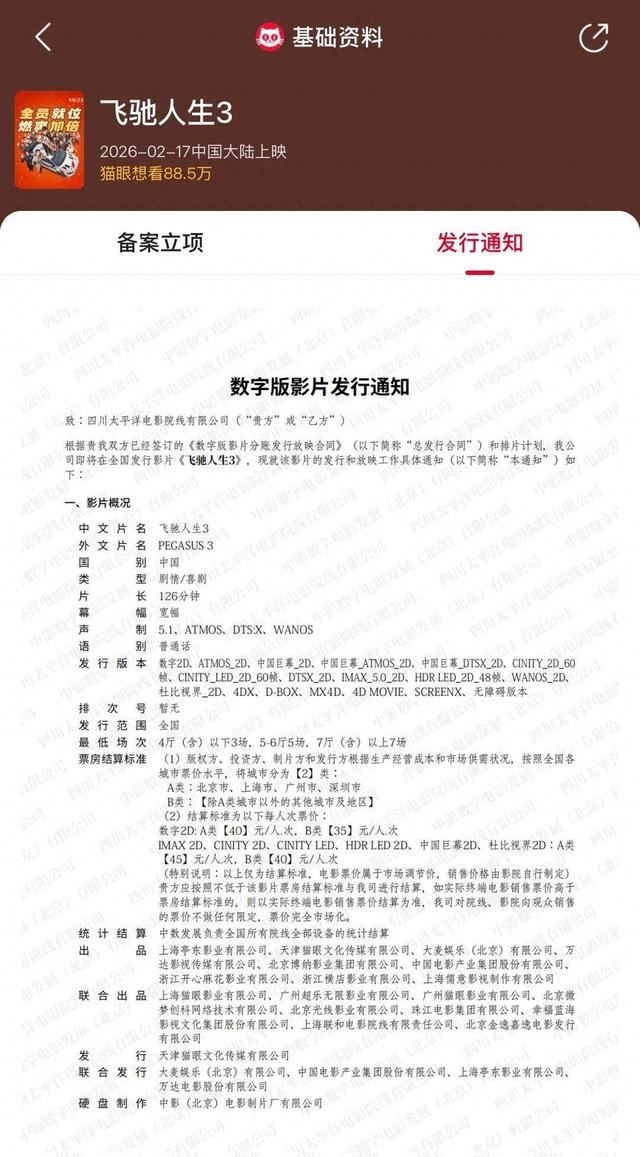 今天上午,2026春节档将正式开启预售,各影片的发行通知基本都公布,都是2月17日9点起片。