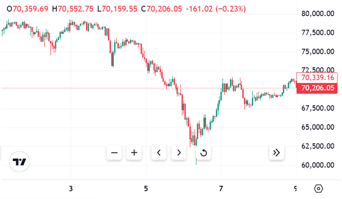 白宫买入比特币的消息被视为一重利好。而随着美国投资者重返加密货币市场,比特币目前已经从低点反弹至70000美元以上。