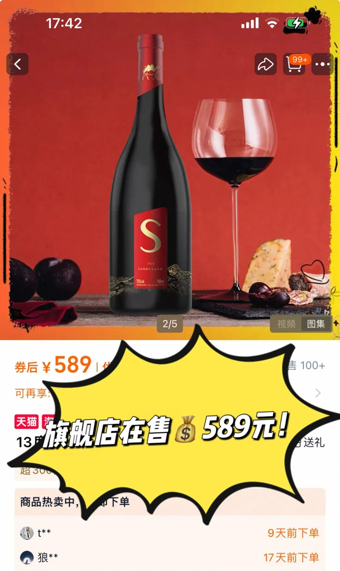 在官旗,这款S半甜红6瓶都要589元,平均每瓶价值小百元!价值不言而喻!