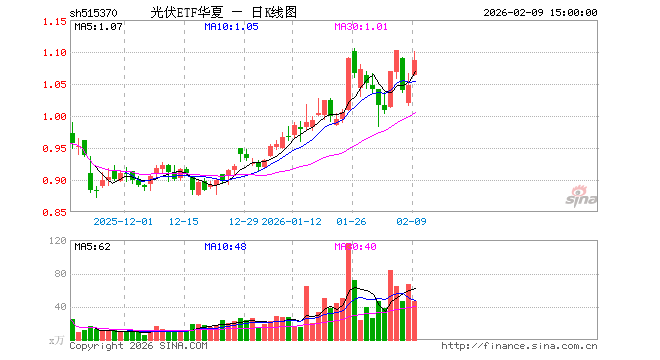 2月9日,光伏ETF华夏(515370)涨3.82%,成交额5062.94万元。当日份额减少200.00万份,最新份额为13.56亿份,近20个交易日份额减少2.22亿份。最新资产净值计算值为14.71亿元。