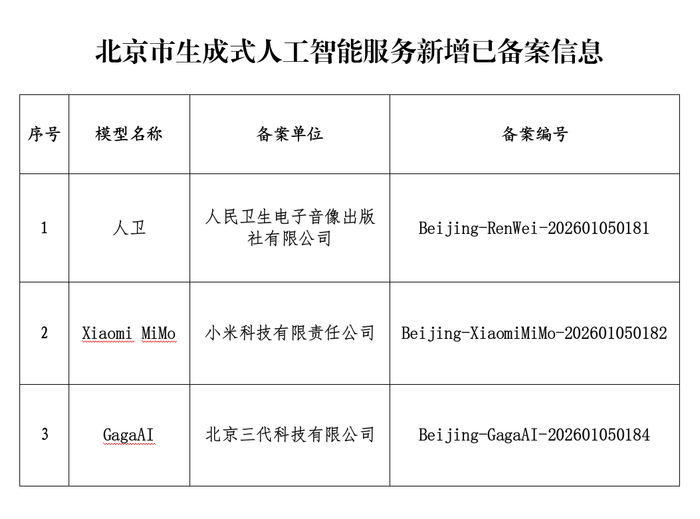 北京市新增3款已完成备案的生成式人工智能服务