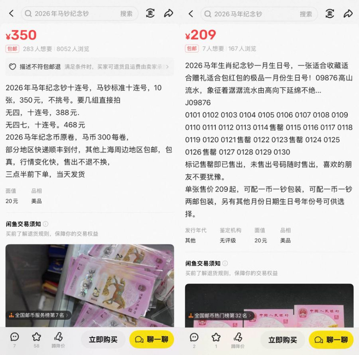 有业内人士同时提到,以投资为目的炒央行发行的纪念币、纪念钞等,同样存在不确定性。“生肖纪念钞每年都有很多人炒,也有很多黄牛在炒,但不是炒纪念钞都能赚钱,也有人买了以后没人收。”