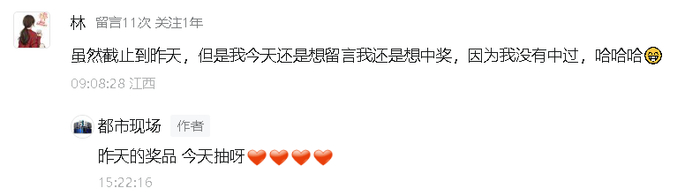 即日起至2月10日,关注“都市现场”微信公众号,参与文章评论,即有机会获得奖品;获奖名单将于第二日公布。