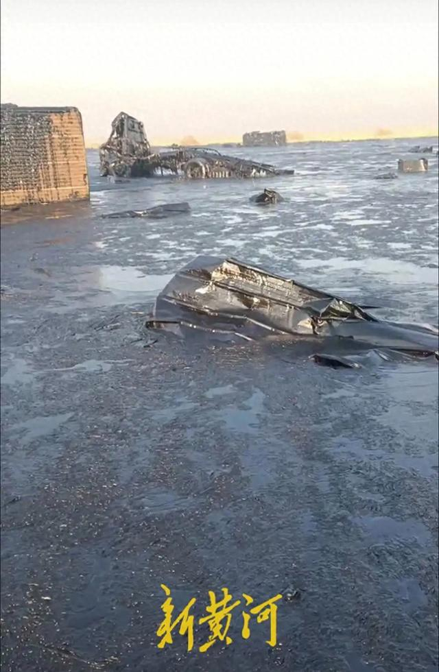 2025年初,拓驰实业工厂内的一座数吨重的储罐发生倒塌,造成罐内大量沥青泄漏,停在罐下的几辆大货车被沥青冲出数十米远。所幸事情发生在凌晨,并未发生人员伤亡,但周边近二十亩的永久基本农田却难逃厄运,田地全部被沥青淹没。