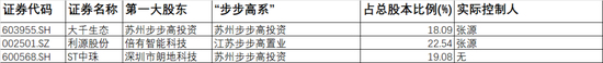 苏州步步高、江苏步步高置业是近一年“步步高系”布局A股市场的主要平台。这两家公司均由张源直接控股,分别持股65.93%、40.31%。