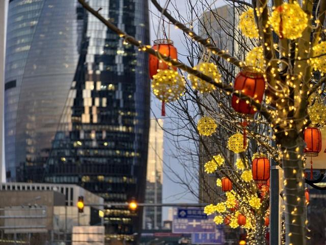 夜幕降临,丽泽金融商务区主干道两侧彩灯带缠绕枝头,盏盏红灯笼随风轻摇,将街巷勾勒得温暖而璀璨。路旁巨大的“春”字灯组格外醒目,为这座“金融之城”增添了浓浓年韵。“灯笼一挂,彩灯一亮,过年的感觉一下就来了,心里暖烘烘的,上班的疲惫都消解了不少。”正在散步的市民张先生告诉记者,自己就在附近工作,最近几天明显感觉下班路上“氛围不一样了”。