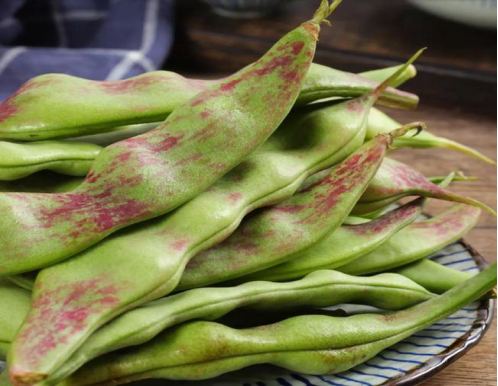 东北油豆外观呈绿色,部分豆体有红色线纹,果实饱满,豆粒为椭圆形。这种扁豆与常见扁豆不同,其外皮脆嫩,含水分较多,容易煮熟,但豆粒却较大,不容易煮透。