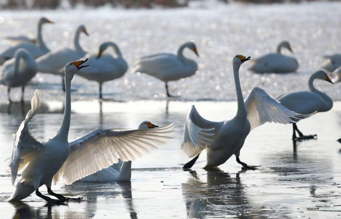 每年2月下旬,北京与河北交界处的官厅水库将迎来大批从南方返回的候鸟,它们会在水库临时停留补充能量。2月12日,北京青年报记者从北京黑豹野生动物保护站巡护队员处获悉,由于近日气温回升,大天鹅、赤麻鸭、灰鹤等部分候鸟已经提前返回。
