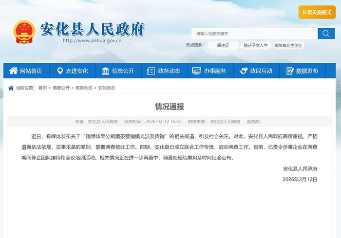 新京报讯 2月12日,湖南省益阳市安化县人民政府发布情况通报。