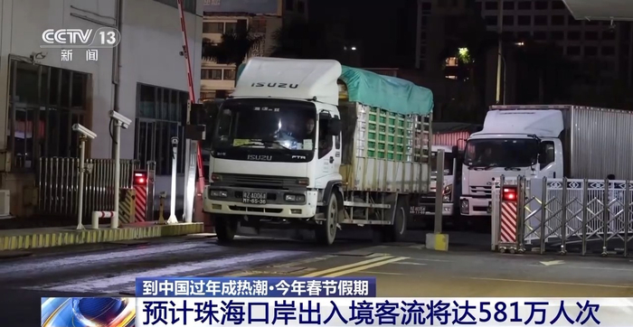 珠海边检总站边防检查处科长 罗雄威:珠海口岸的出入境客流主要集中在拱北口岸,车流则集中在港珠澳大桥珠海公路口岸,占比均在五成上下。春运以来,往来人员主要以跨境采购年货、寒假赴港澳研学、旅游等客流为主,预计节前高峰将持续到除夕。