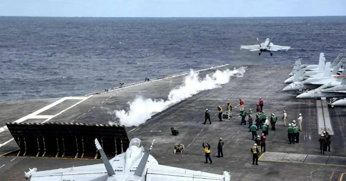 资料图:美国航母上的蒸汽弹射器弹射舰载机瞬间(来源:澎湃新闻)