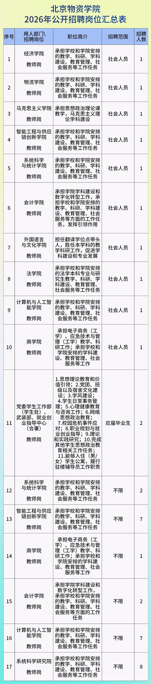 自公告发布之日起至2026年3月13日上午10:00,应聘者访问北京物资学院网上招聘系统,网址: