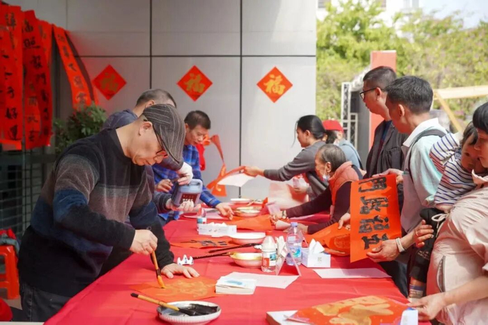 市总工会在市工人文化宫、各区、镇(街道)工人文化宫、企业园区、职工服务中心等各类工会活动服务阵地、站点开展“工会送福进万家”活动7场,服务职工超1500人,邀请书法家现场为职工写春联,号召有条件的基层工会在单位内举办送春联活动,共同营造万副(万福)春联贺新春、欢乐喜庆过大年的节庆气氛。
