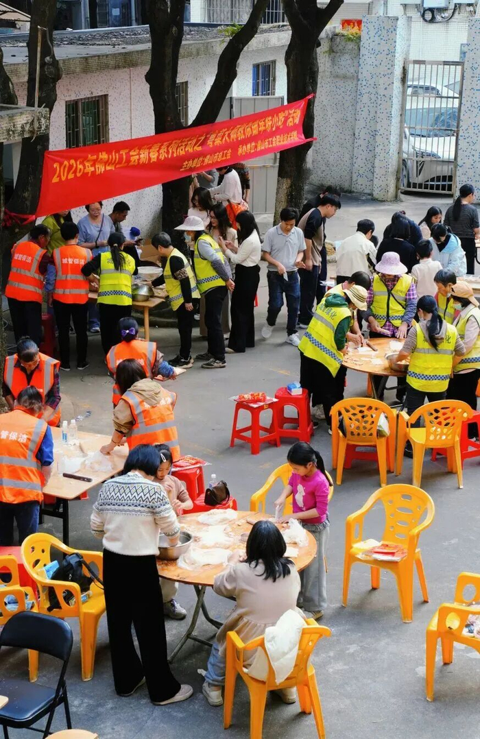 中国烹饪大师、佛山金城大酒店点心总厨邹越奇站在操作台前,揉、压、切、叠、炸,一气呵成。“蛋散要酥脆,手心的温度、油温的控制都讲究专注与匠心,就像对待工作一样。”他一边讲解,一边将金黄的蛋散递到职工手中。