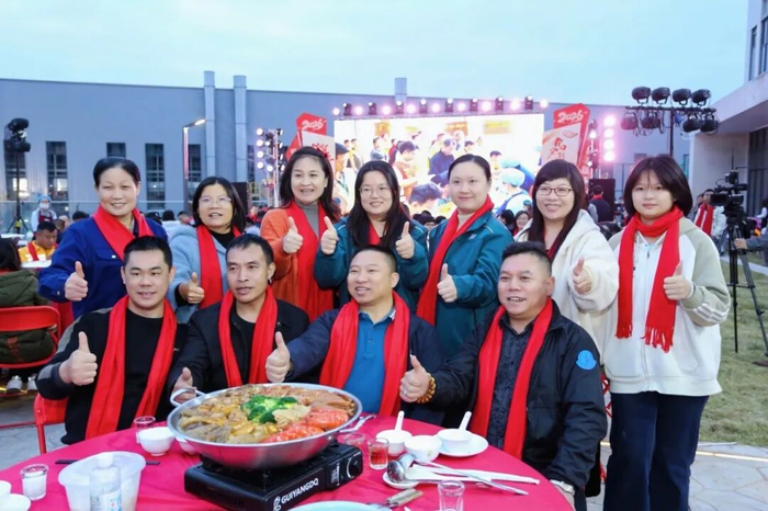 年夜饭正准备着,趣味游园、送挥春、年味小吃等区域早已热闹起来:书法家现场挥毫送福,粤菜大师手把手教学,职工们穿梭打卡,手里攥着刚写的春联,嘴里尝着地道小吃,脸上满是笑容。“头一回和这么多同事吃年夜饭,跟大家的感情更熟悉了!” 来自远轻铝业(广东)有限公司的官秋婷道出了大家的心声。