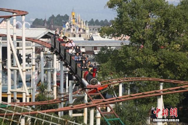 2月13日,春节前夕,重庆迎来暖阳天气,位于长江三峡库区的美心红酒小镇旅游持续升温,景区各类游乐设施吸引众多游客前来体验游玩,节日氛围浓厚。图为游客玩耍游乐设施。杨孝永 摄