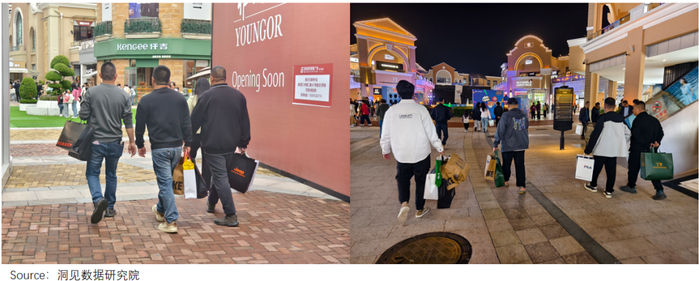 三五中年男人结伴而行,手中提着大袋小袋,身边没有女性同行——这样的场景在传统商场是天方夜谭,在奥莱却随处可见。