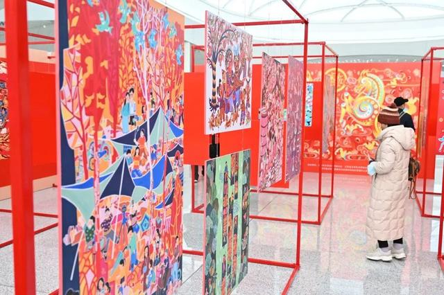 从北京通州站西进站口进入,便可邂逅4项精彩展览:“生肖迷城——全球吉庆生肖设计大赛作品展”采用“超现实尺度”设计,将生肖作品与空间艺术结合,打造互动打卡场景,让观众沉浸式体验生肖文化的当代创新;“赏年画过大年——新生活新风尚新年画 2026美术作品征集展示活动”集中展示200余幅优秀新年画与马年生肖作品,以创意美术传递新春祝福;“那年来通州——跨越千年的城市漫步”特展展出34件出土于通州站建设工地的文物,时间横跨战国至清代,展现通州两千年未曾中断的历史脉络;“大河之畔・新城之光”城市建设纪实摄影展则生动呈现城市副中心“古今同辉、蓝绿交织、水城共融”的独特风貌。