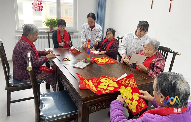 这边饺子下锅,香气四溢;那边活动中心音乐响起,护工们换上喜庆的服装,跳起了欢快的舞蹈。书画室内,墨香浓浓,老人们写下的“福”字铺满一桌。剪好的窗花,早已贴在走廊明亮的玻璃窗上,红红火火,年味十足。