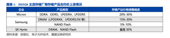 根据券商整理的数据,2025年四季度DDR4、DDR5、DARM和NADAFlash产品仍在提价。2026年第一季度,存储芯片上行周期已步入第三个季度,持续的涨价趋势,将继续对产业链相关公司的股价构成核心支撑。