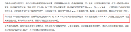 另外,他称医疗器械可能在2026年某个季度看到业绩拐点,但属于边际交易,性价比可能不如创新药。反而医疗服务虽未看到业绩拐点,但定价已极度便宜,因此风险收益比突出。
