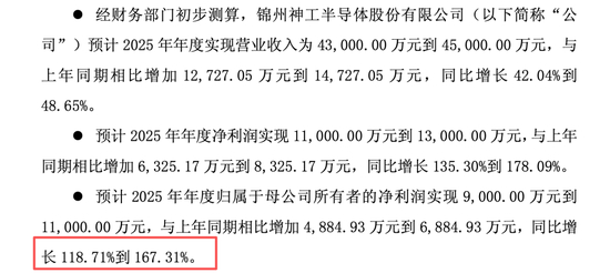 而神工股份作为整个半导体制造行业的上游,其材料不仅可以用于存储芯片还可以应用于逻辑芯片(CPU/GPU)、模拟芯片等所有先进制程的生产线。2025年神工股份的利润已有增幅,归母净利润同比预计增长118.7%-167.3%。