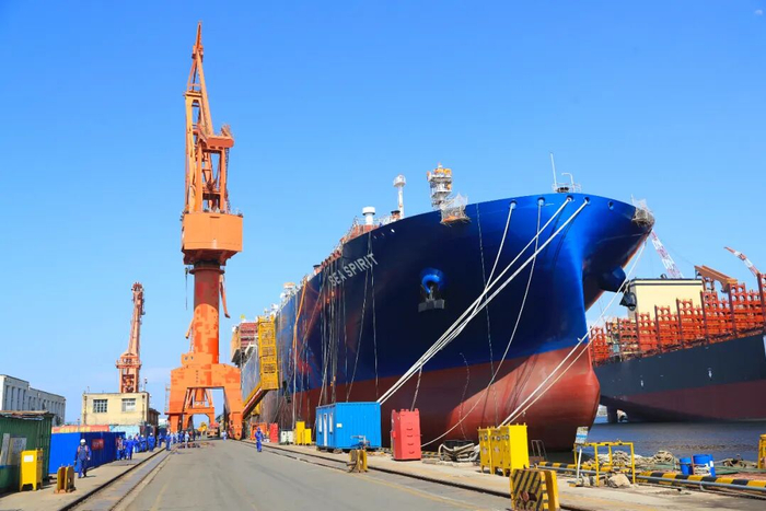 就在两个月前,2025年12月22日,中国船舶集团旗下大连造船还公布了一个“劲爆”消息:全球首艘应用国产甲醇双燃料动力并搭载智能液货管控系统的30万吨级超大型原油船“凯拓”轮,提前4个月交付。