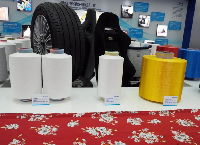 位于大连长兴岛的恒力石化产业园内展示的环保纤维和环保高端工业丝产品/新华社记者章磊 摄