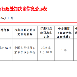 2月14日金融一线消息,中国人民银行内蒙古自治区分行行政处罚决定信息公示表显示,中国农业发展银行内蒙古自治区分行因违反金融统计管理规定,受到警告,并被罚款 68.5万元。