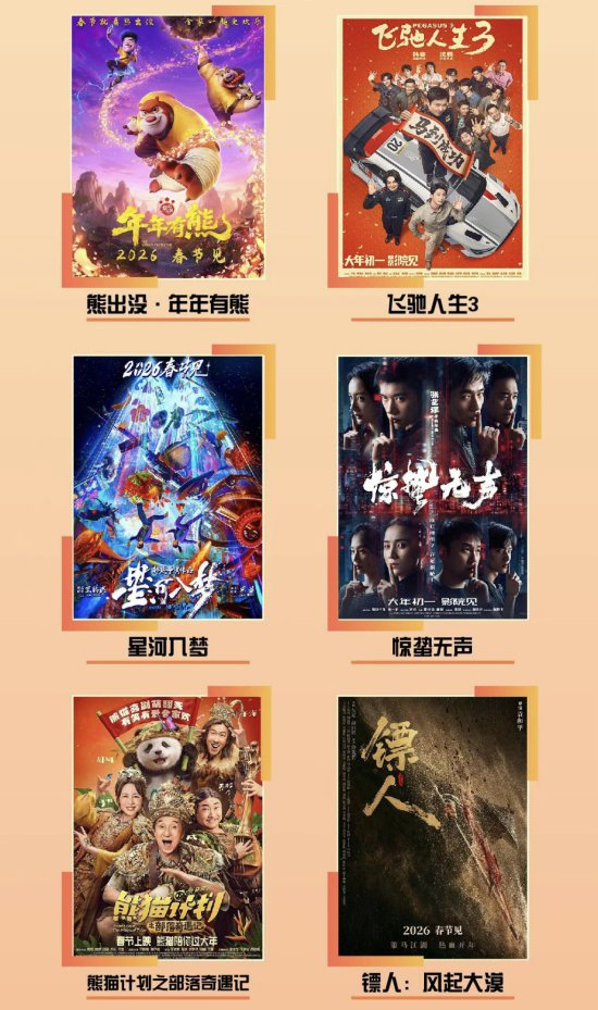 据吉林省电影发行放映协会统计,今年春节档影片阵容强大、类型多元,涵盖悬疑、喜剧、动作、科幻、动画、温情等题材,满足全年龄段需求。《熊出没·年年有熊》《熊猫计划之部落奇遇记》适合阖家观赏;《惊蛰无声》《镖人:风起大漠》带来紧张刺激的悬疑与武侠体验;《飞驰人生3》《星河入梦》备受年轻观众青睐。全省影院实行全时段排片,IMAX、巨幕、4D、杜比全景声、CINITY等高端影厅全面开放,观影选择丰富多样。