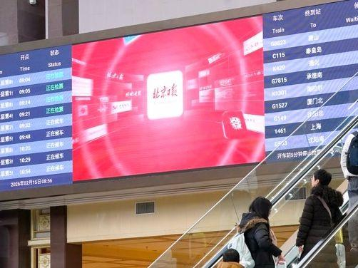 今天正值春运客流高峰,北京七大火车站候车大厅LED显示大屏展播内容中,新添了多部北京日报社的原创短视频作品,旅客在候车间隙就能欣赏“京味儿”大片。视频展播范围覆盖北京站、北京西站、北京南站、北京北站、清河站、北京朝阳站、北京丰台站等7个火车站,每天播放总频次超过200次。