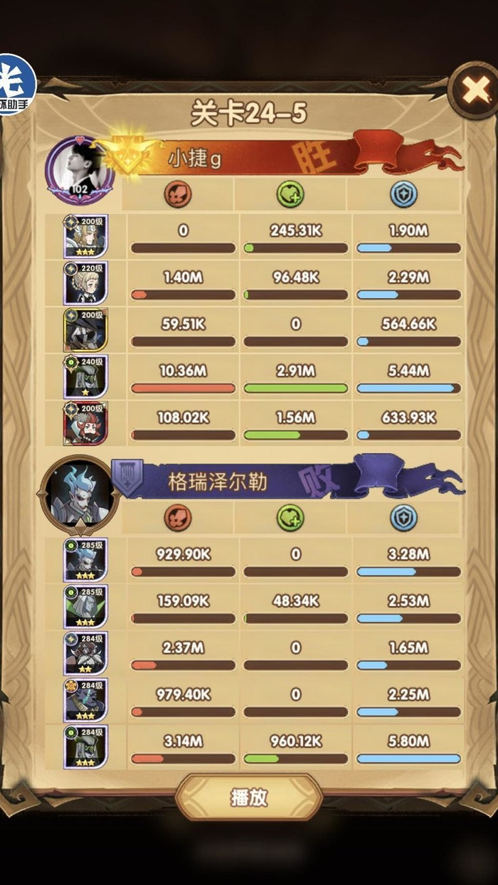 这关需优先升级光盾和光女,快速释放女妖大招,从24章起女妖需三次大招才能稳定通关。