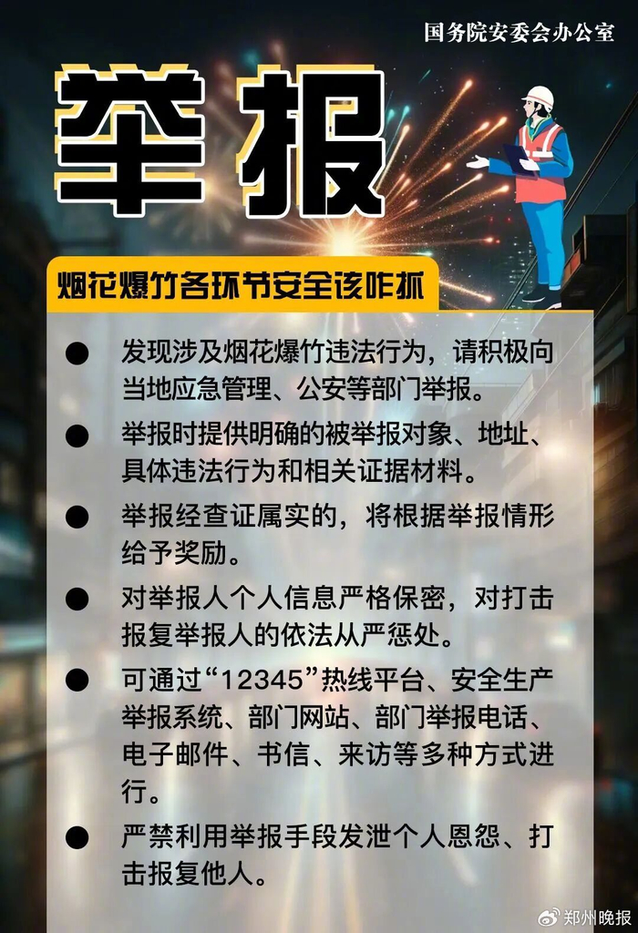 除夕迎来烟花爆竹燃放高峰,重要提醒!务必高度警惕,严防事故发生。烟花爆竹各环节安全如何抓?↓↓↓