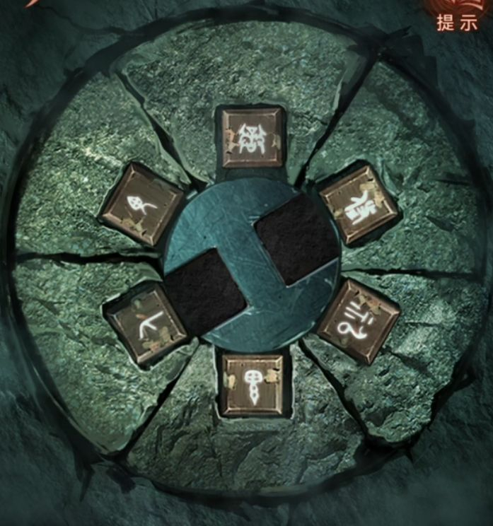 踩着牌匾来到右侧石碑前,可以清晰看到上面的字,关键在于左旋,从鬼开始,前三字属阴,其余属阳,按倒序输入便是门上密码的解法。随后女主向左来到机巧阁,将齿轮安放在墙上的机关上,机关随即转动,看起来像一个表盘,上面刻有六个字:最顶端是鬼,逆时针依次为鬼、凡、神、坤、宙、乾。
