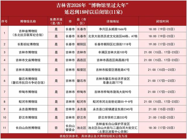 (本文表格由吉林省文化和旅游厅提供)