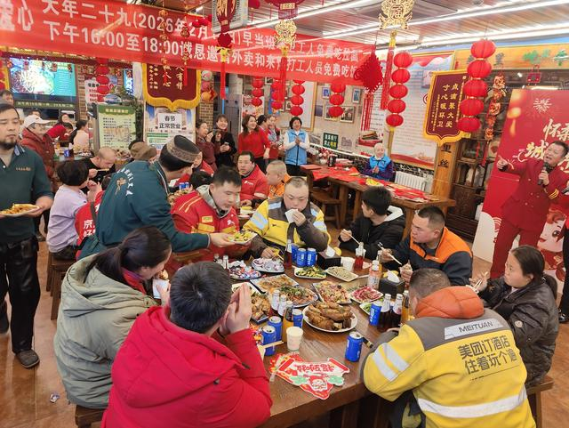 今年,这份温暖又多了一层延伸。“很多打工人、外卖员,过年回不了家,一个人太冷清了。我就想请他们一起吃顿热乎的年夜饭。”王黑麦说,这是他第一次专门邀请外卖员和留怀打工人免费就餐。