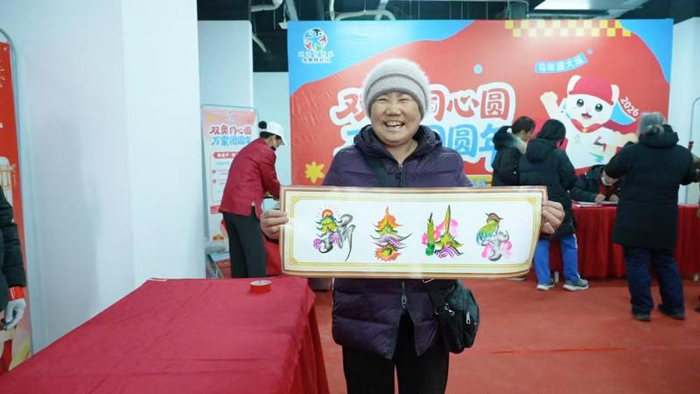 非遗花鸟字摊位前,手艺人将笔墨与花鸟意象融合,为居民现场书写吉祥作品。“没想到我的名字能变成这么雅致的画!”一位居民手持作品,满脸笑意地与邻里分享。糖葫芦摊位甜香四溢,晶莹的糖壳裹着饱满鲜果,唤醒了童年的记忆。指尖的非遗技艺与居民的欢声笑语交织,让优秀传统文化在邻里互动中自然传承,为双奥社区增添了浓郁的年味。