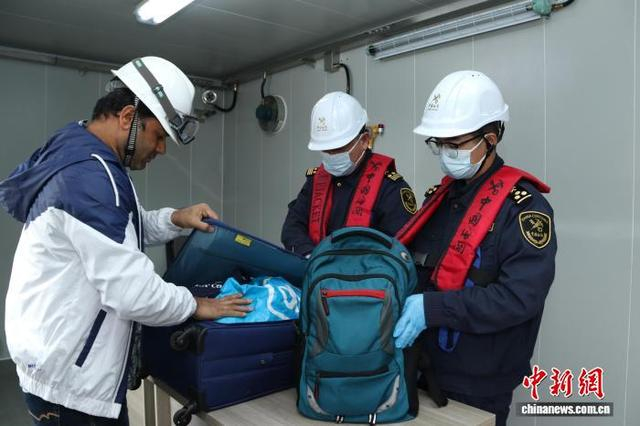 完成物料查验后,沈云杰和同事又马不停蹄地前往海关查验专用房开展船员换班相关检疫和查验工作。“请将行李物品放到桌子上并打开。”根据预先申报的名单核对了船员信息,沈云杰和同事重点关注了船员健康状况及行李是否含有禁止携带入境物品,经逐一检查,所有船员均顺利入境,踏上了与家人团聚的归途。