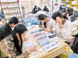 顾客们沉浸在拼豆的乐趣中。
