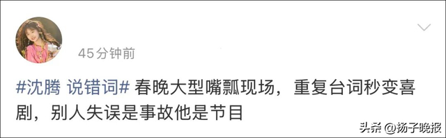 有网友调侃,“怪不得拍微电影去了”“别人忘词是事故,沈腾忘词是节目”。
