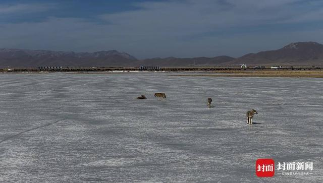 今年1月28日,有工作人员在巡护过程中,曾在封冻结冰的花湖面上,拍到有狼群活动。