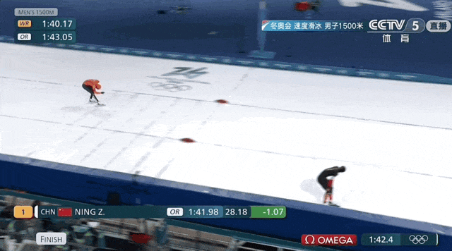 北京时间20日凌晨,在米兰-科尔蒂纳冬奥会速度滑冰男子1500米比赛中,中国选手宁忠岩以1分41秒98的成绩打破奥运纪录,夺得冠军。