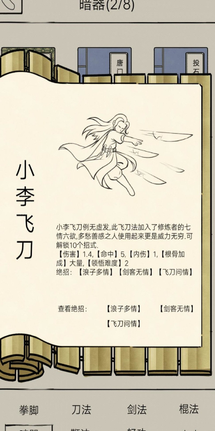 小李飞刀需相遇七次,第六次得武功,第七次获绝招,需购500金探花服。
