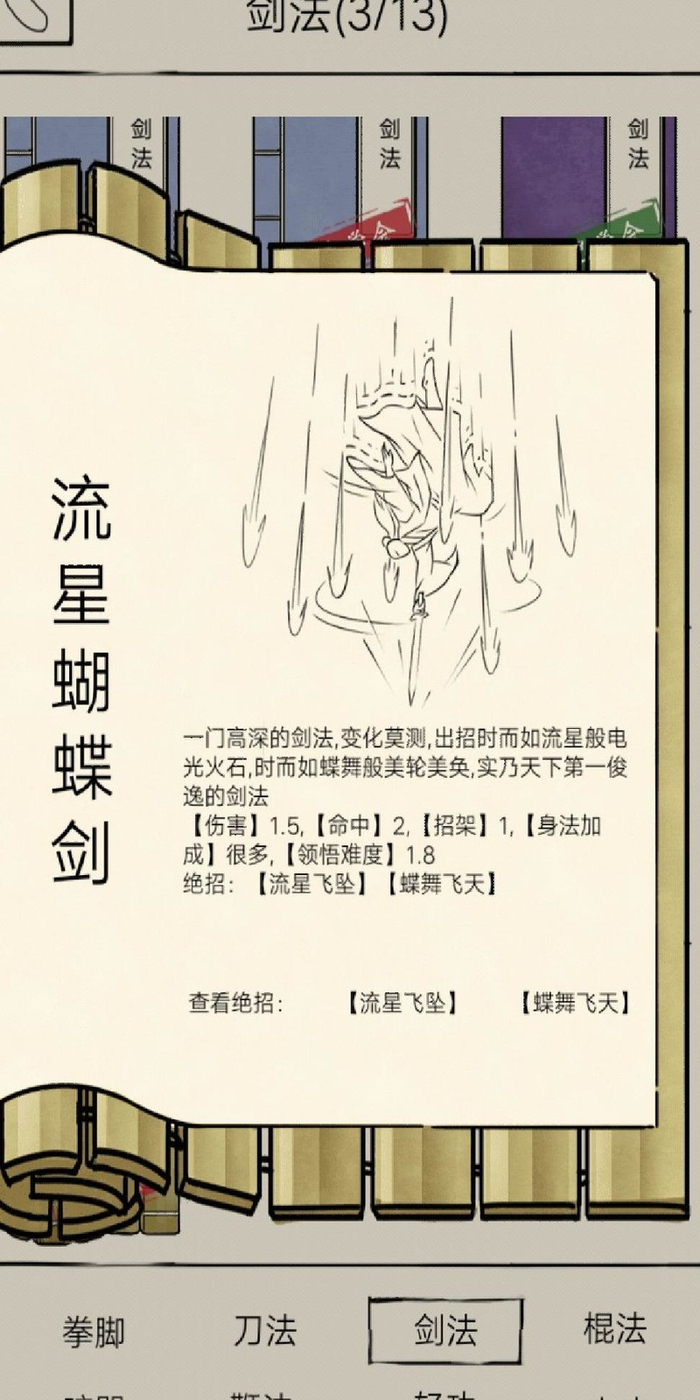 与老乞丐对话,完成蹲守任务,即可获取流星蝴蝶剑残页1-10,习得剑法,各门派均可修习。