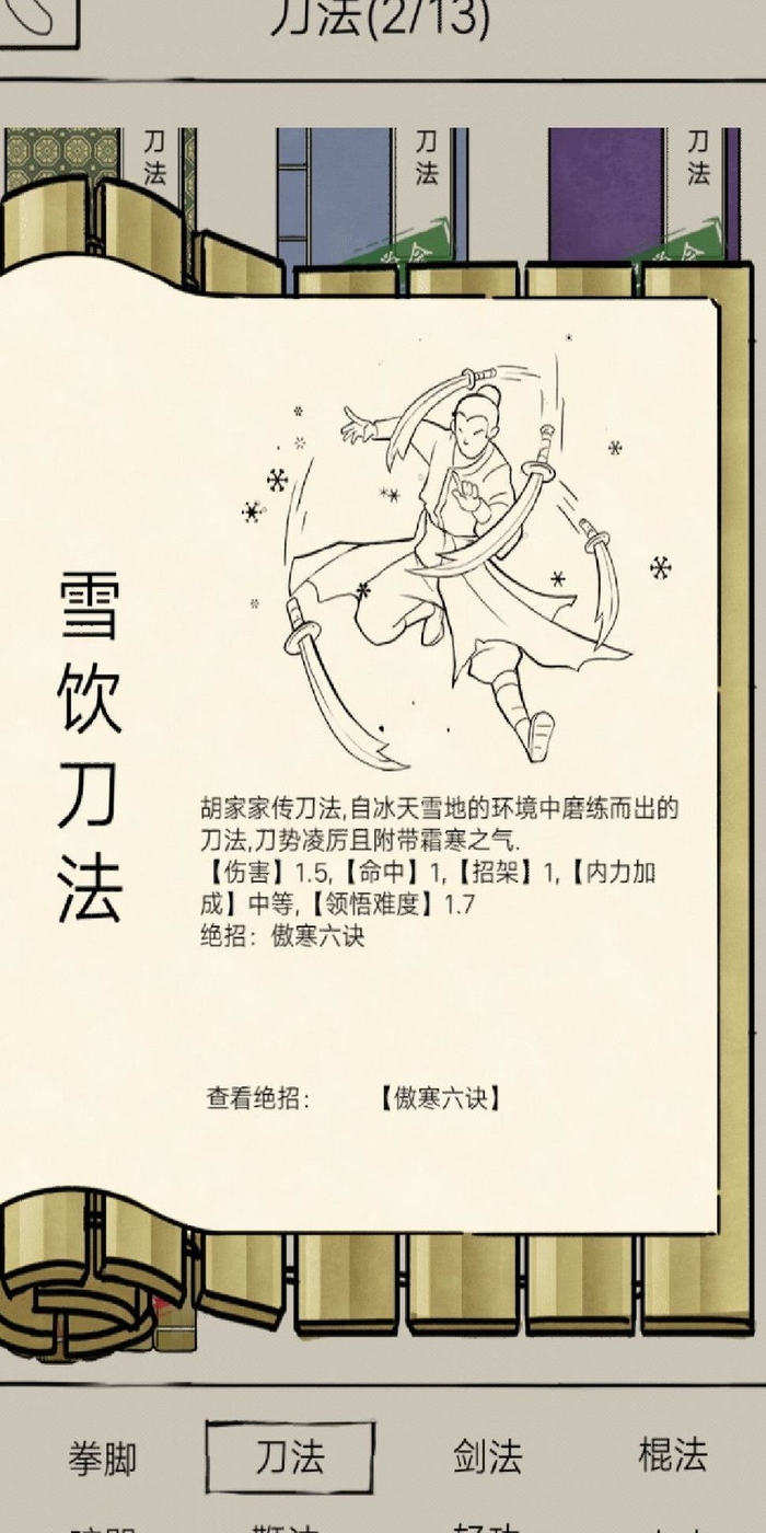 完成条件可开启雪饮刀法任务,仅限伊贺和逍遥门派学习。